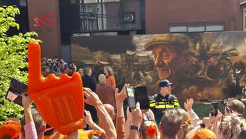 Tijdens Koningsdag 2025 had RoosArt de bijzondere eer om een muurschildering te maken ter ere van het bezoek van het koningshuis aan Doetinchem. Speciaal voor deze gelegenheid hebben wij een schilderij gemaakt waarin de rijke historie en het karakter van de Achterhoek centraal staan - met taferelen van de iconische veemarkt en het leven in en rond Doetinchem. Een onvergetelijk hoogtepunt: koningin Maxima bracht zelf een schildering van een kroontje aan op het kunstwerk. Het kunstwerk komt te hangen op de Veemarkt te Doetinchem.